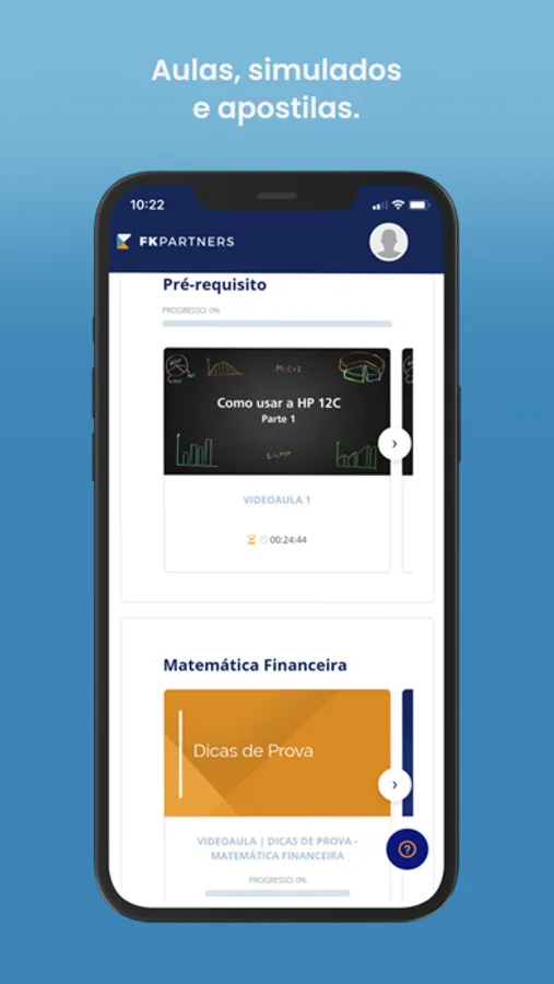 Assista às aulas, faça os simulados e acompanhe seu progresso no novo aplicativo da FK Partners: o melhor conteúdo na palma da sua mão!