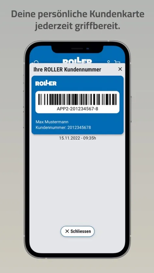- digitale Kundenkarte mit zusätzlichem Rabatt-Vorteil beim Einkauf in deutschlandweit über 100 Filialen und im ROLLER Online-Shop