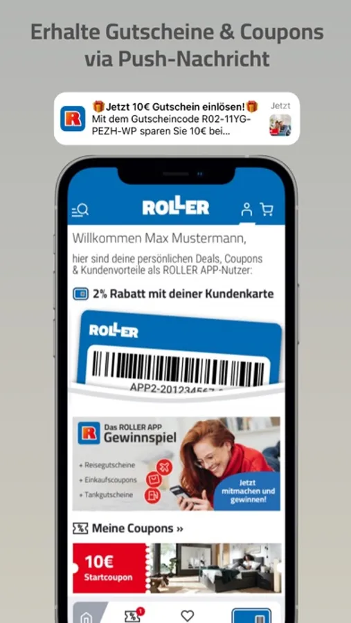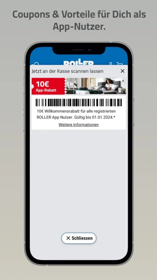 - in-App-Willkommens-Coupon bei der Erstregistrierung als ROLLER-Kunde