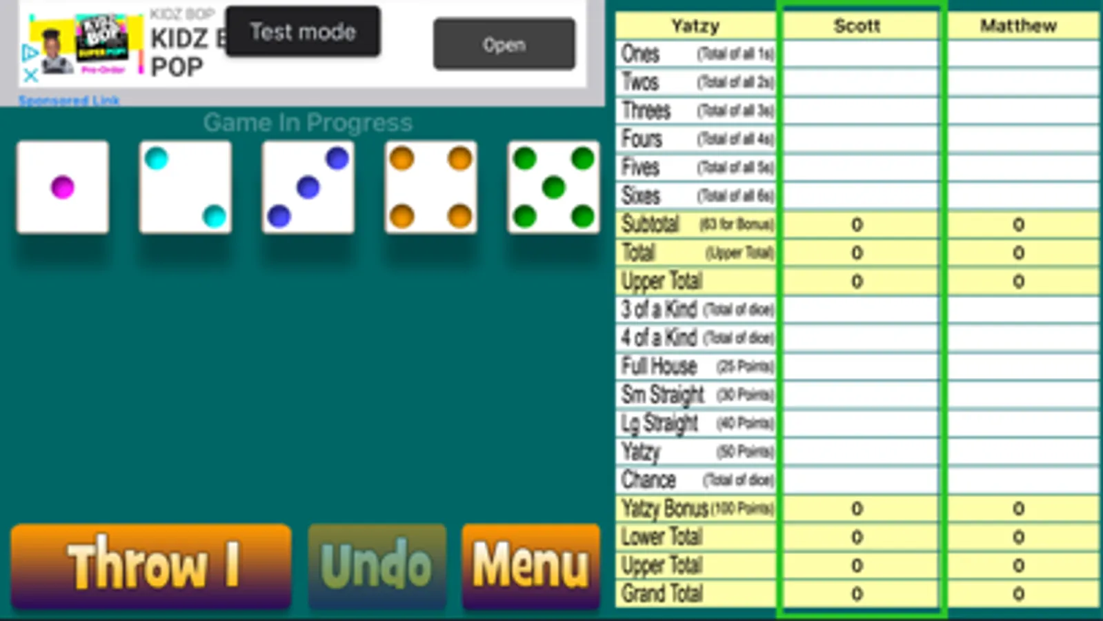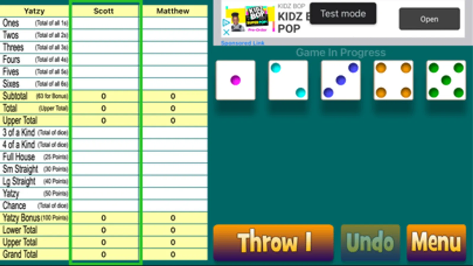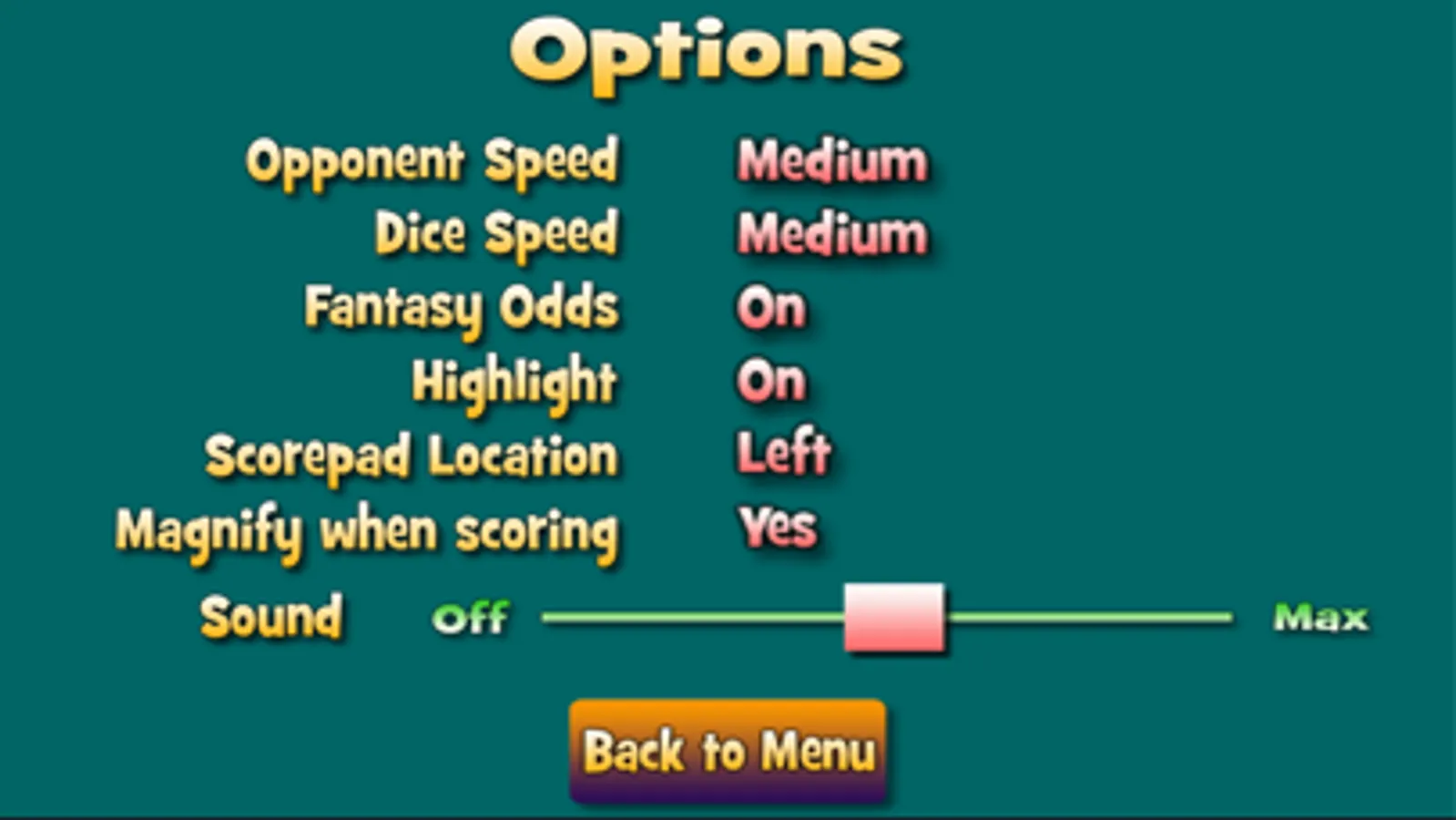 Exactly like the classic game. Original Yatzy can be played on even the smallest iPhone with a scoring magnification that makes it easy. You play against opponents. Optional speed let's you play very fast if you want.