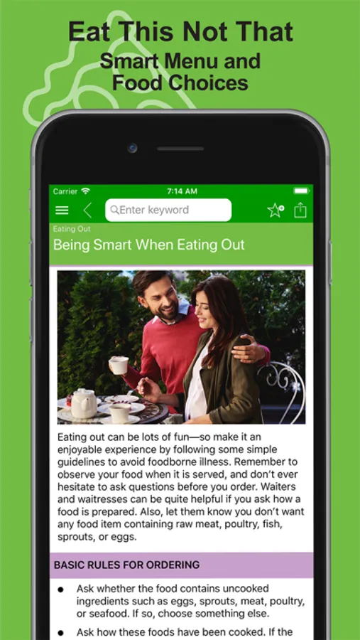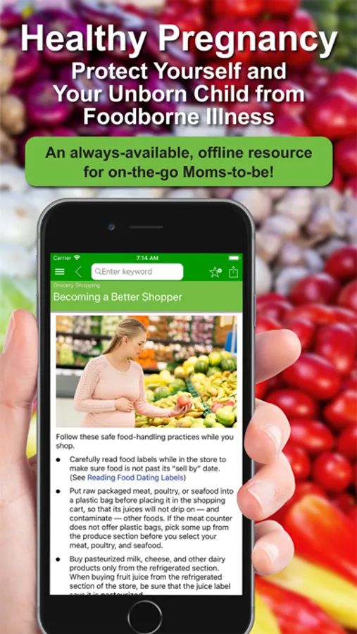 This app is designed for Moms-to-be and provides information created by the USDA and FDA that provides practical guidance on how to reduce your risk of foodborne illness.