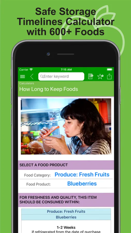 • Food Storage Guidelines Calculator with 600 foods