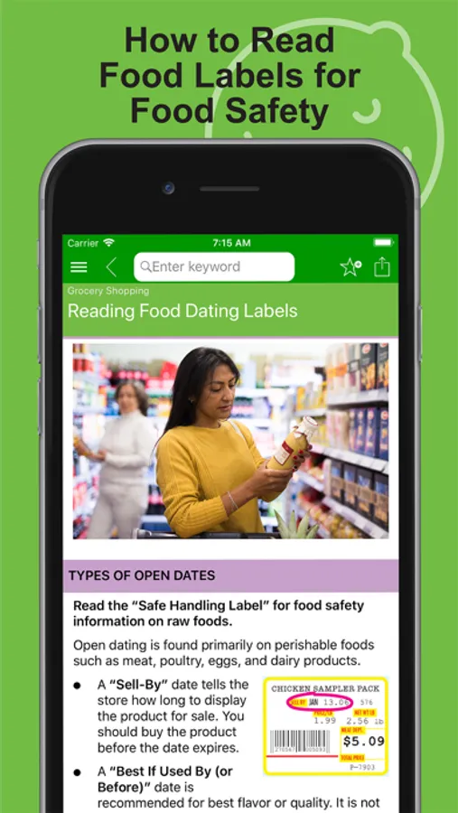 • Shopping safety: Food labels, choosing food, handling food