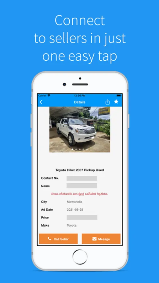 • Type required search criteria (eg. vehicle brand, model, price range, etc..) to find the best for you. You can contact the seller from the given details.