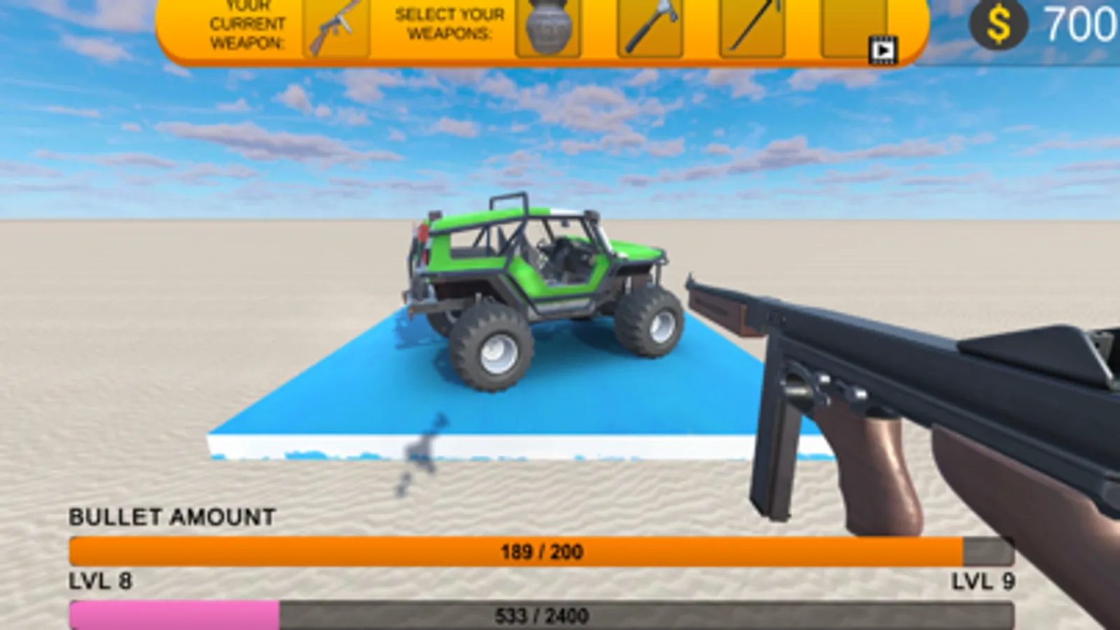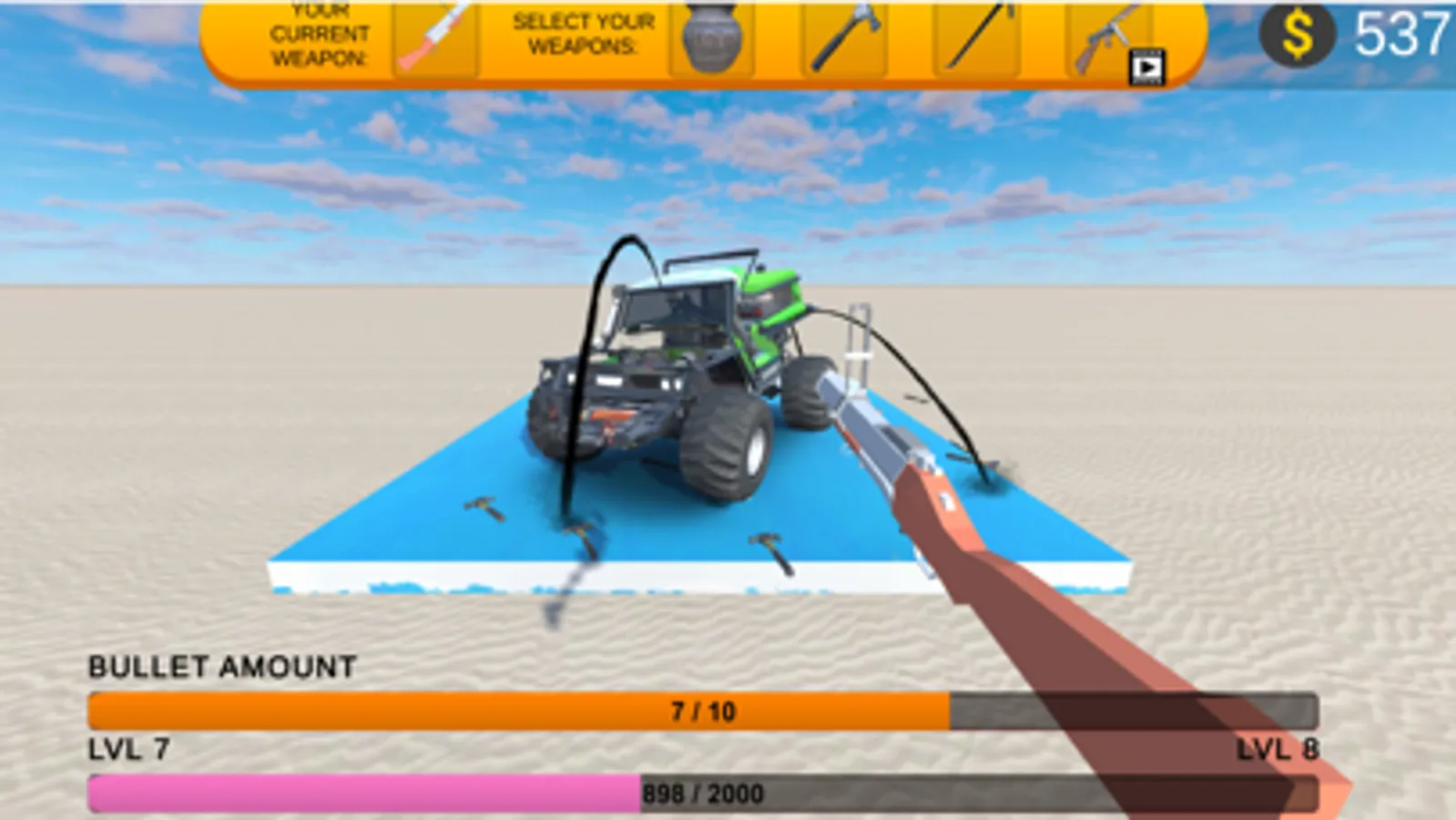 You will get a free car at the beginning,select your weapon to destruction and demolition derby destory the car,you will get new wepons when you levelup