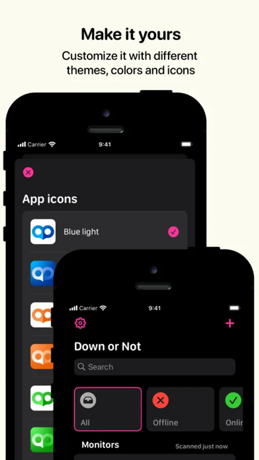 With Down or Not you will be able to track the status and performance of your websites and will let you be the first to know about downtimes. Down or Not checks your website's status by sending an HTTP request then notifies you on your device. You can choose how and when you would like to be notified about any unusual changes.