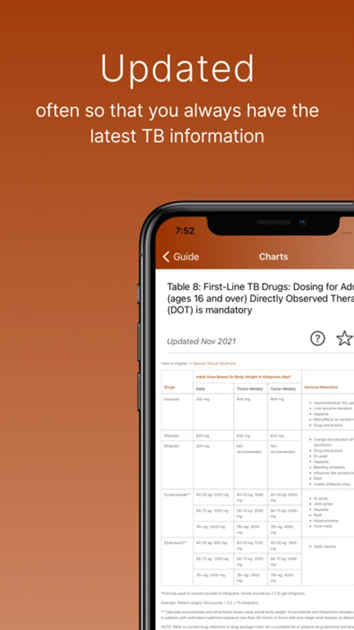 This app responds to clinicians’ questions about tuberculosis infection, disease, and control. The standards and guidelines are based on the work and experience of the American Thoracic Society (ATS), the Centers for Disease Control and Prevention (CDC), the Infectious Disease Society of America (IDSA), Emory University, the World Health Organization (WHO), and the Atlanta TB Prevention Coalition. This edition contains updated recommendations on the treatment of latent tuberculosis infection (LTBI) and treatment of active tuberculosis disease.
