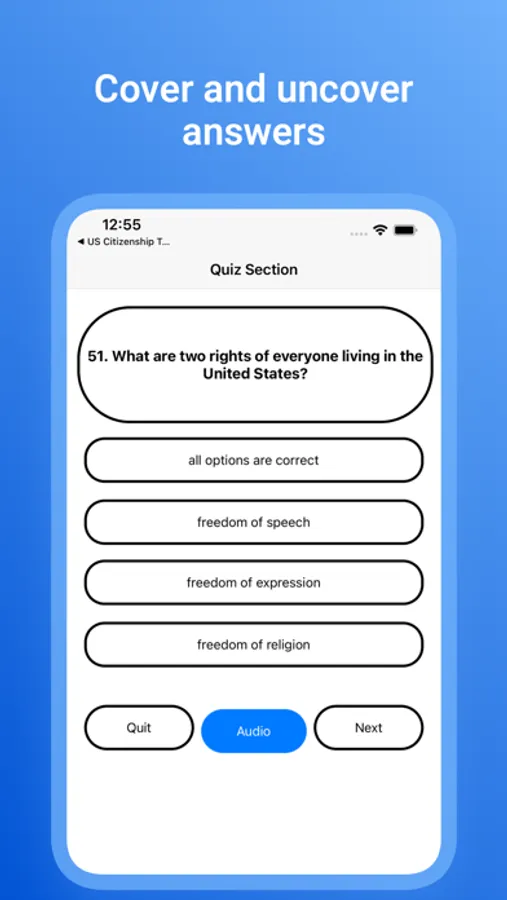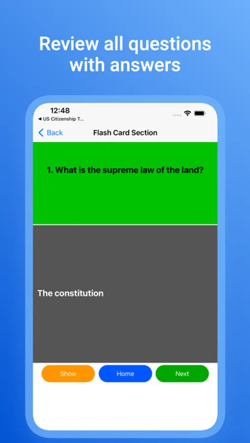 This is a us citizenship civic test. This citizenship interview test has contains many features such as review, flash card, audio and quiz. People who are going to become US citizen can download this app. People can take test and practice using this app because this app ask random questions every time users click on Next button.