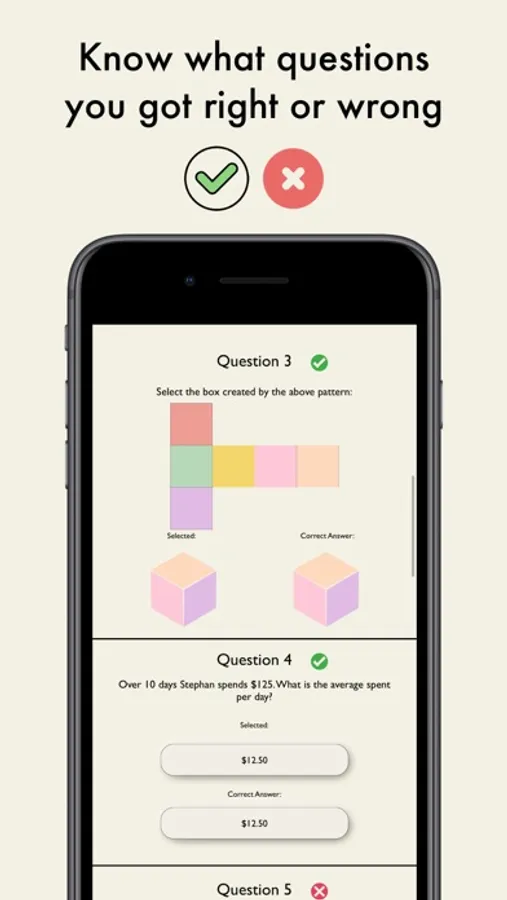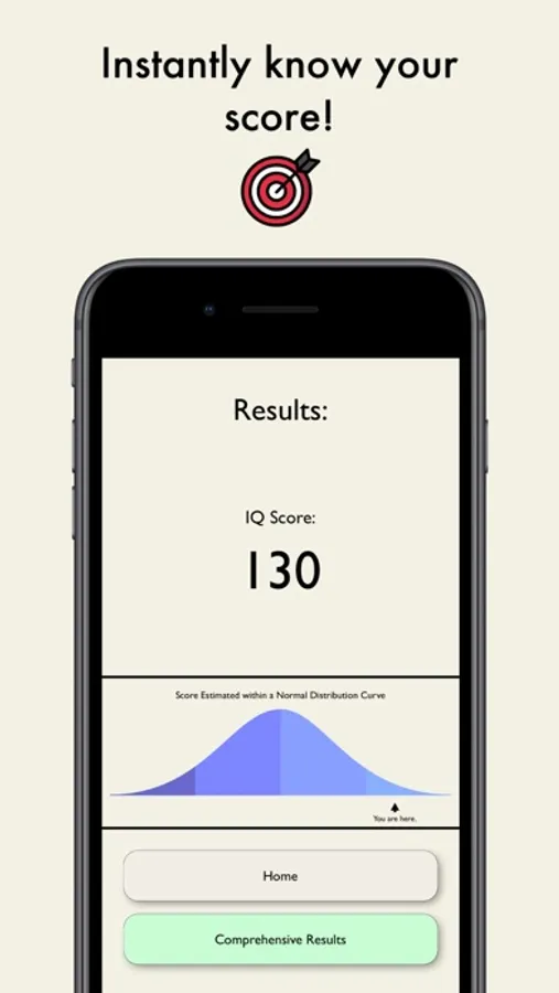 This IQ Test App offers a short test taking 4 minutes. It will instantly give you a number indication, and displays where on a normal distribution the scores sits. Furthermore, you can access which question were answered correct and incorrectly.