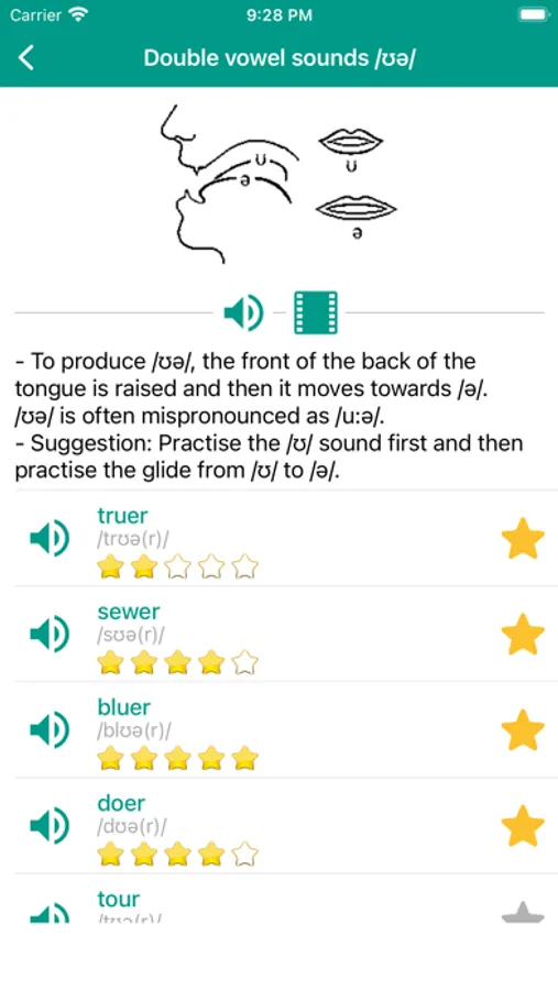 - You can tap on the words in practice area to hear the correct pronunciation of that word