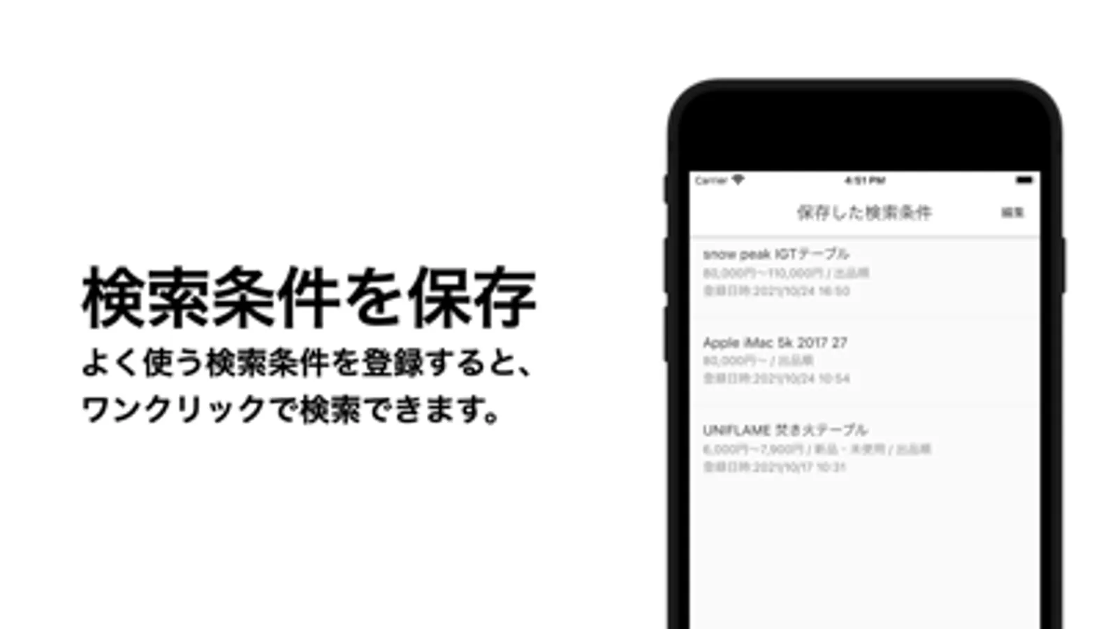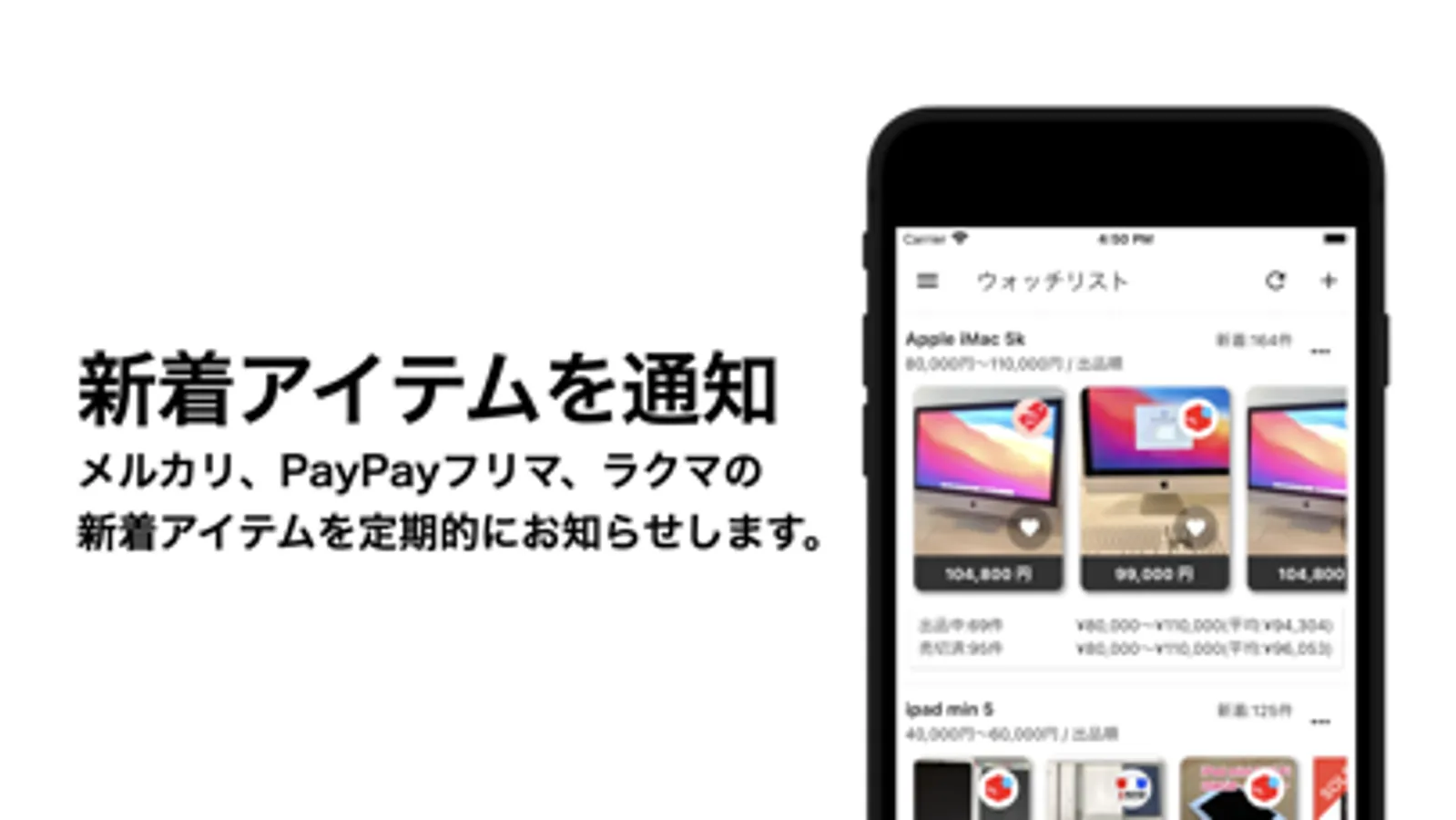 ウォッチリストを登録すると、新着出品を定期的(※)にiPhone/iPadに通知します。