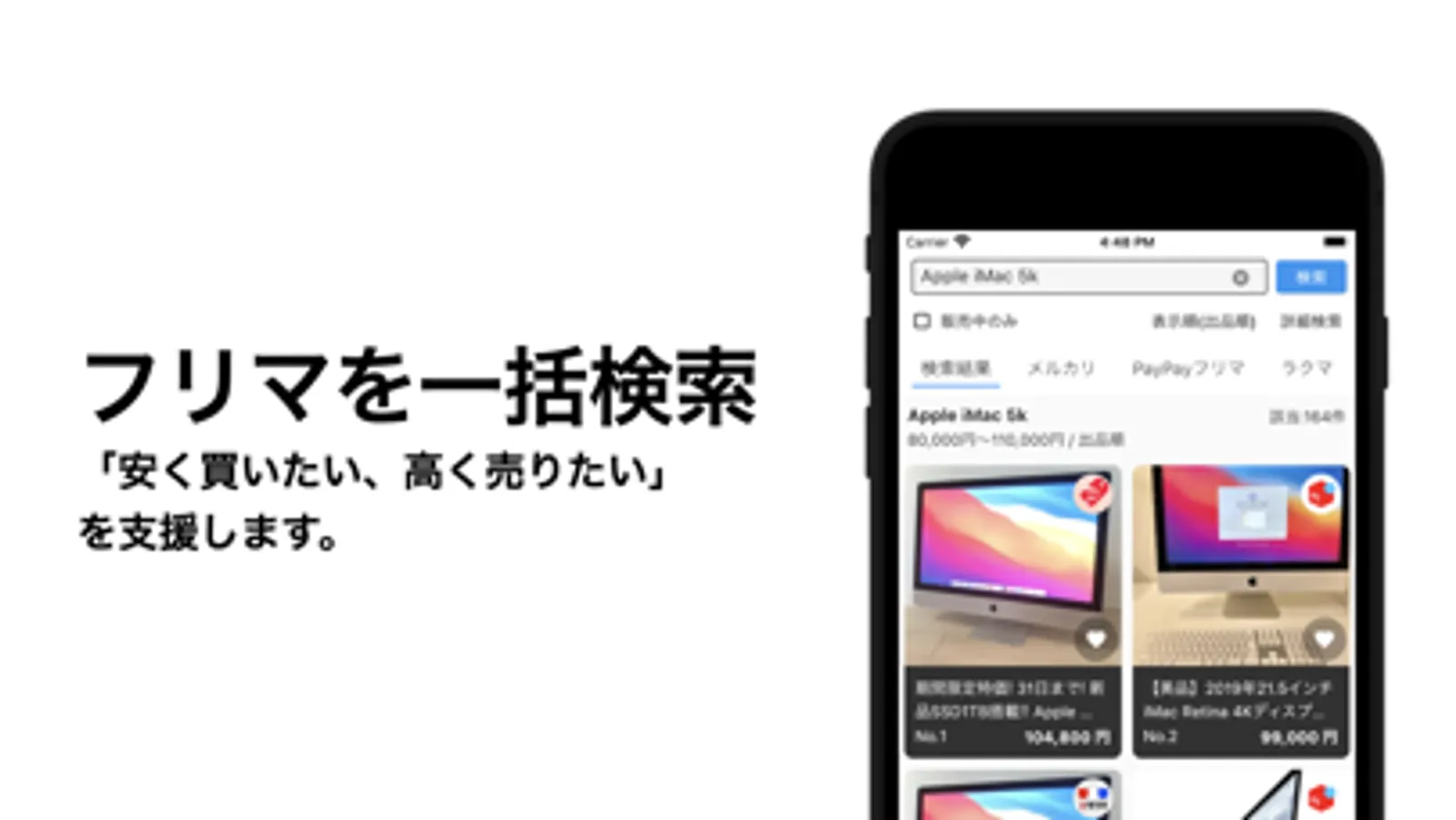 ・本アプリは一括検索するアプリです。商品の購入や出品時は各フリマサイトから提供されているアプリもしくはブラウザを利用します。