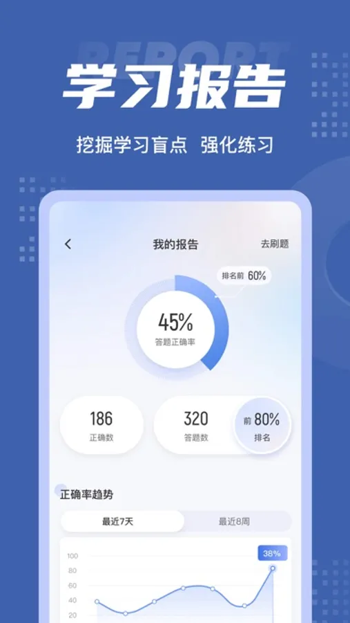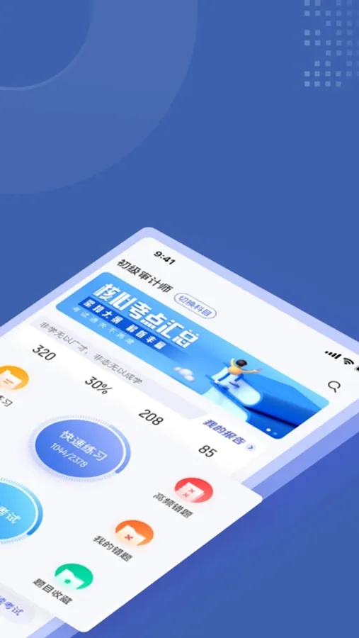 审计师题库内含考点练习,全国通用卷以及地区卷模拟练习,以及按照固定考试比重的随机式的抽题的真题考场,成绩单实时记录考试数据,一点一滴的反馈考生近期学习状态以及自我正确率的提升,大大的给予考生通过考试的信心。