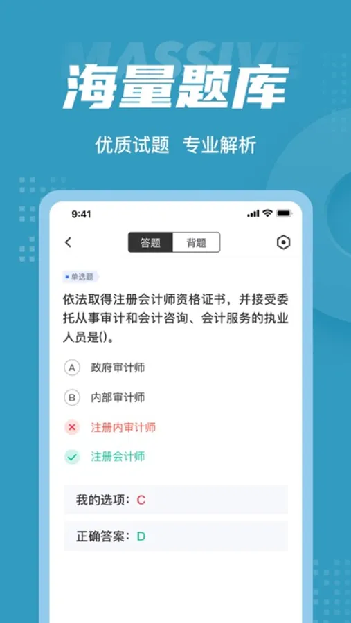 初级审计师题库内含考点练习,全国通用卷以及地区卷模拟练习,以及按照固定考试比重的随机式的抽题的真题考场,成绩单实时记录考试数据,一点一滴的反馈考生近期学习状态以及自我正确率的提升,大大的给予考生通过考试的信心。