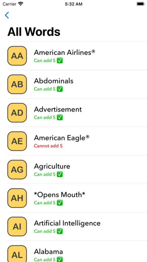 Additionally, this is a great tool to help more advanced players memorize the three letter words. With all the valid two letter +S words, you will also be able to memorize more three letter words!