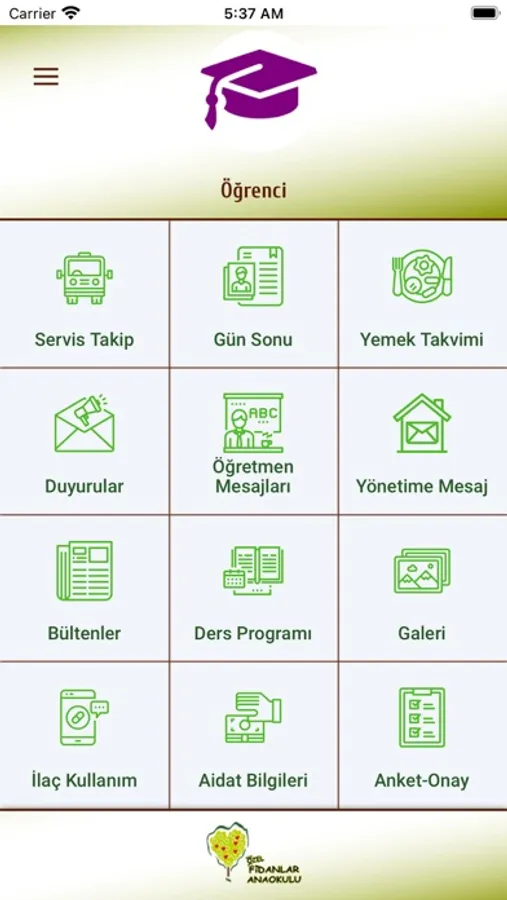 Fidanlar Anaokulu için geliştirilen Fidanlar Anaokulu Uygulaması ile veliler, çocuklarının her türlü bilgilerine anında ulaşabilir, okul servisini takip edebilir, okul duyurularından mobil cihazları üzerinden haberdar olabilir ve öğretmenler tarafından yüklenen resimleri görebilirler.