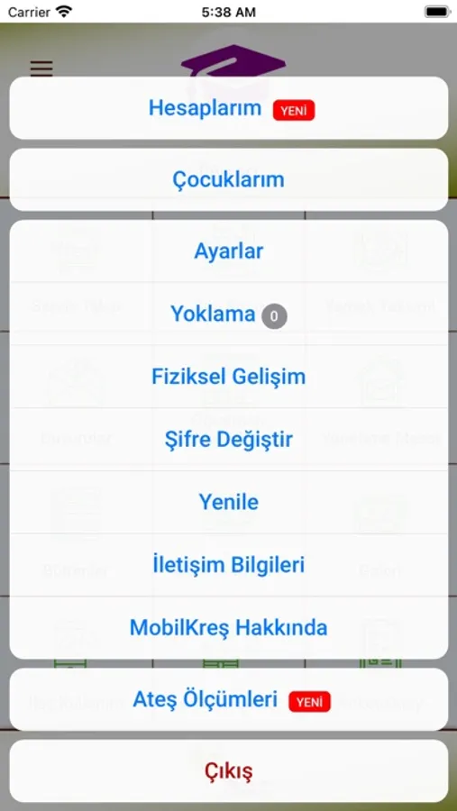 Fidanlar Anaokulu uygulamasında öne çıkan bazı özellikleri