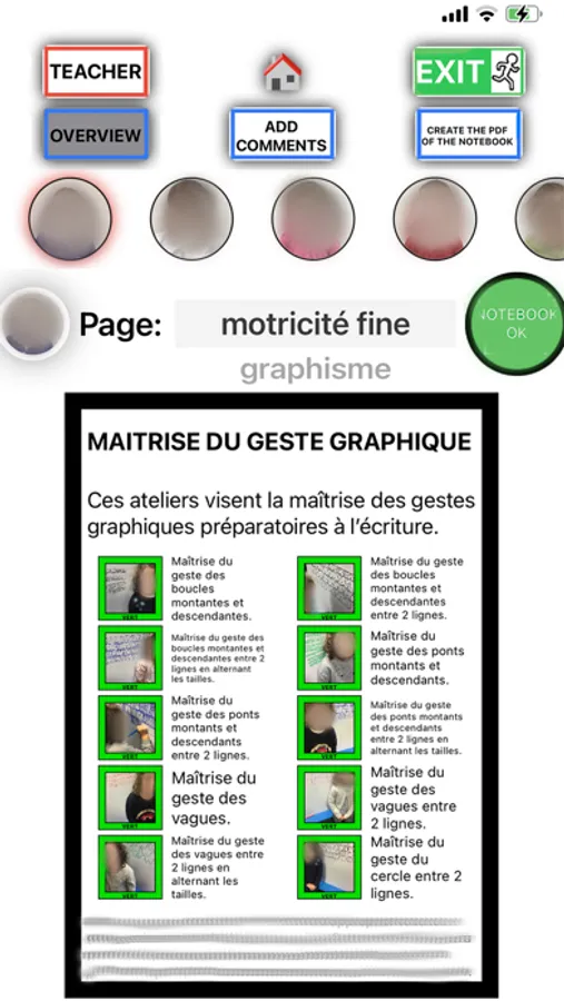 - the follow-up of the pupils will allow individually to change the photo of the workshop for each child, thus offering a maximum personalization.