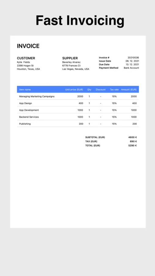 Create custom business invoices fast from your iPhone or iPad with InvCreate. Get paid faster and eliminate the frustration of using complicated (and expensive) invoice creators. InvCreate is here to help you with making e-receipts and simple bills for your customers.