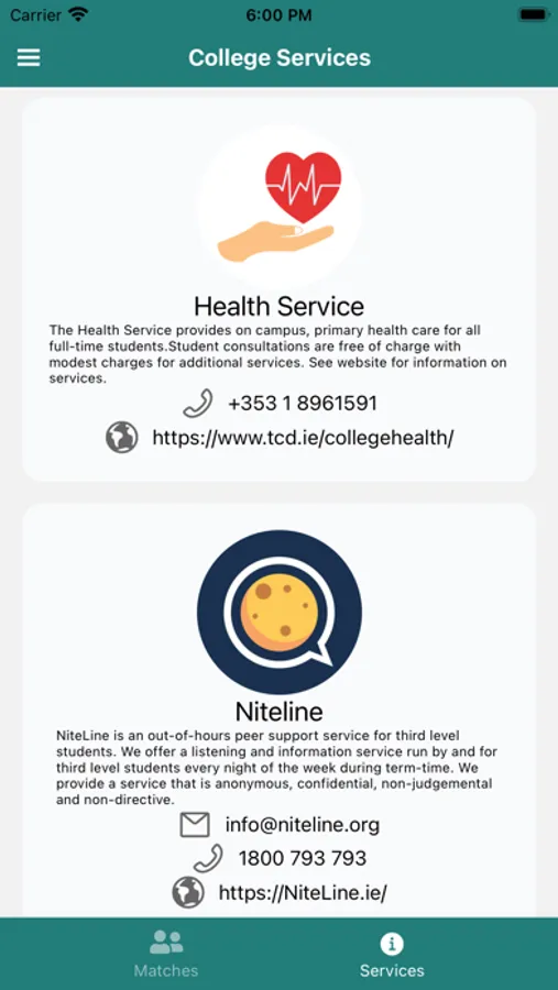 Beyond forming connections, UniPeer also provides contact information and wellbeing services specific to each university or student union.