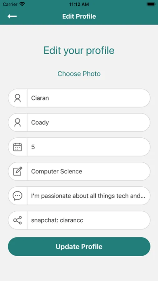 After downloading the UniPeer app, students can use their college verified email address to sign up. Once verified, students can fill out their user profile. This includes year, course information and interests, among other things.