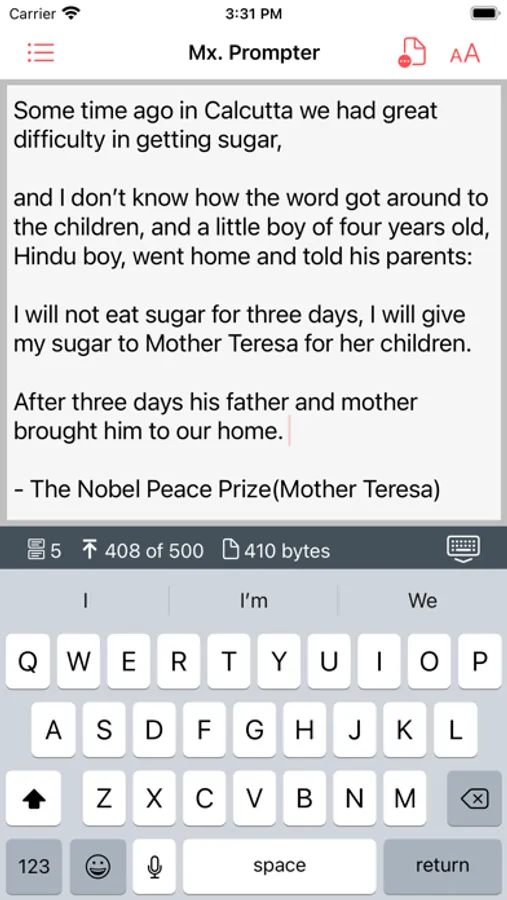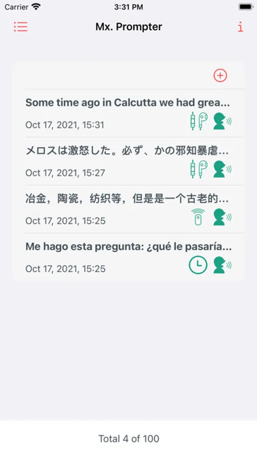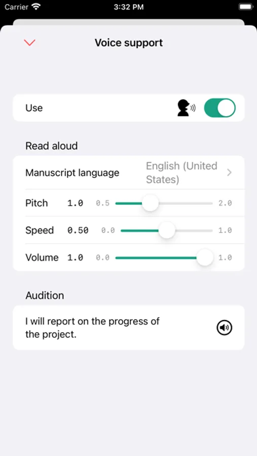 Speech manuscripts can be imported from iCloud or exported to iCloud.