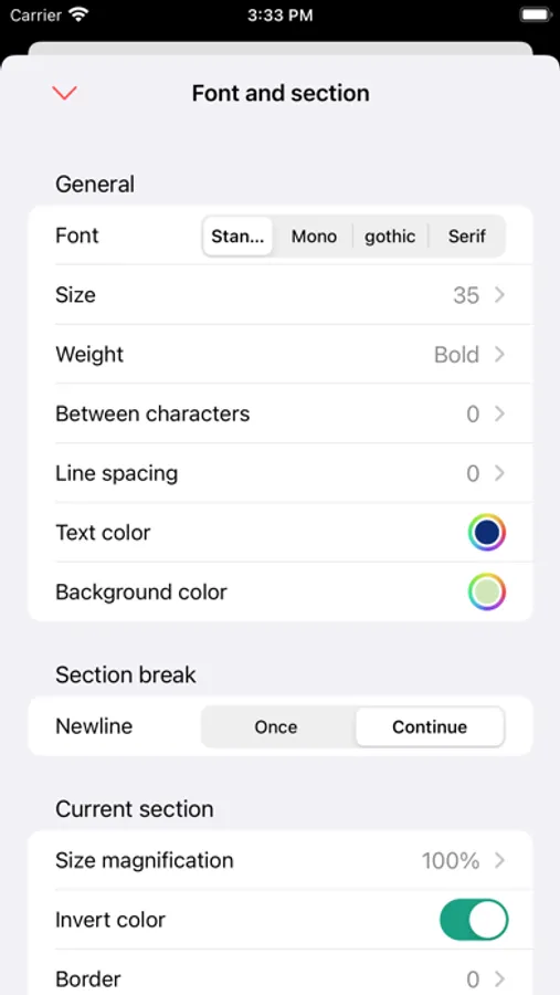 Set the font, text color, background color, etc. of the manuscript text on the speech execution screen.