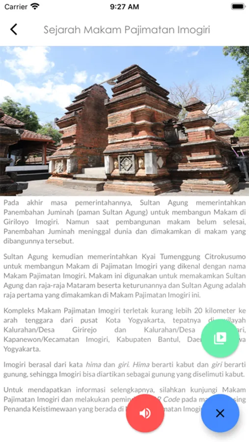 Aplikasi berbasis digital Pemerintah Kabupaten Bantul yang memberikan informasi seputar makam imogiri yang lengkap dan mudah diakses melalui teknologi digital QR Code pada situs Penanda Keistimewaan Makam Imogiri.