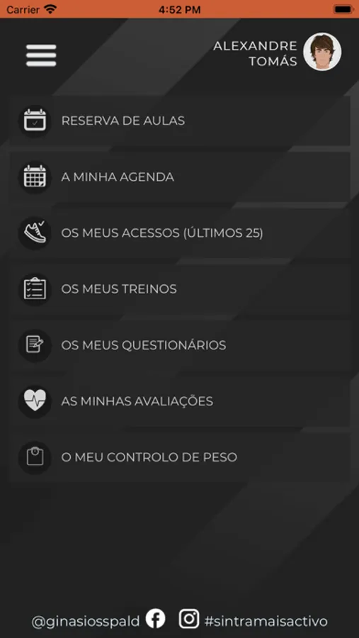 Aplicação do SPALD - onde poderá reservar as suas aulas, ver os seus treinos e muito mais.