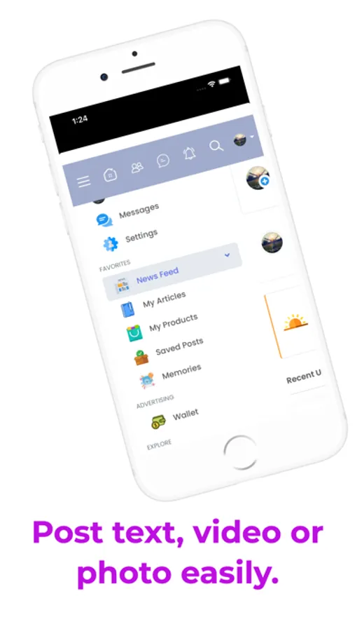 It is a facebook like social network where you can post anything including photos and videos, send friend request, like the posts of your friends and leave comments with hashtags and tags for them. With this app you will never again miss the best moments of your friends’ lives, but always be part of it.