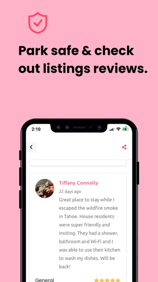 You can choose from hundreds of private listings in the United States. You can filter by anything from bathroom access to working station access and pet play space. Once you found your favorite driveway, you can book it within the app with just a couple of taps. You can then communicate with the host within the app and get push notifications when you get a new message or there's an update to your booking.