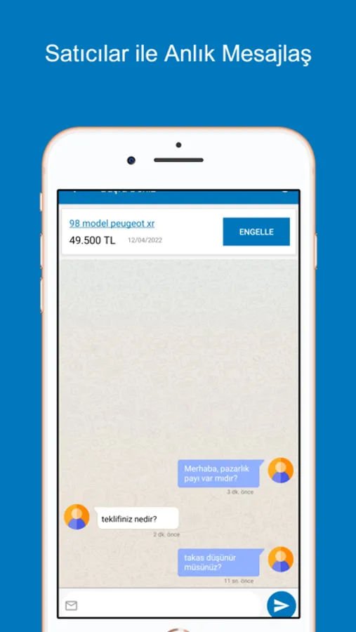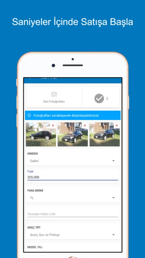 Sadece birkaç saniye içinde ücretsiz üyeliğinizi oluşturun ve ardından satılık aracınızın ilanını dilediğiniz şekilde oluşturup, resimlerini yükleyin. Daha sonra alıcılar telefon numaranız ile ya da uygulama üzerinden mesaj göndererek sizinle iletişim kursunlar.