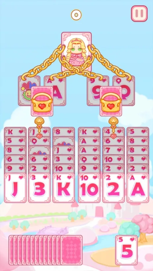 点击纸牌进行接龙,合理利用接龙顺序,解锁挡在公主前面的所有纸牌,当所有挡在前面的纸牌被解锁,公主将被成功救出。