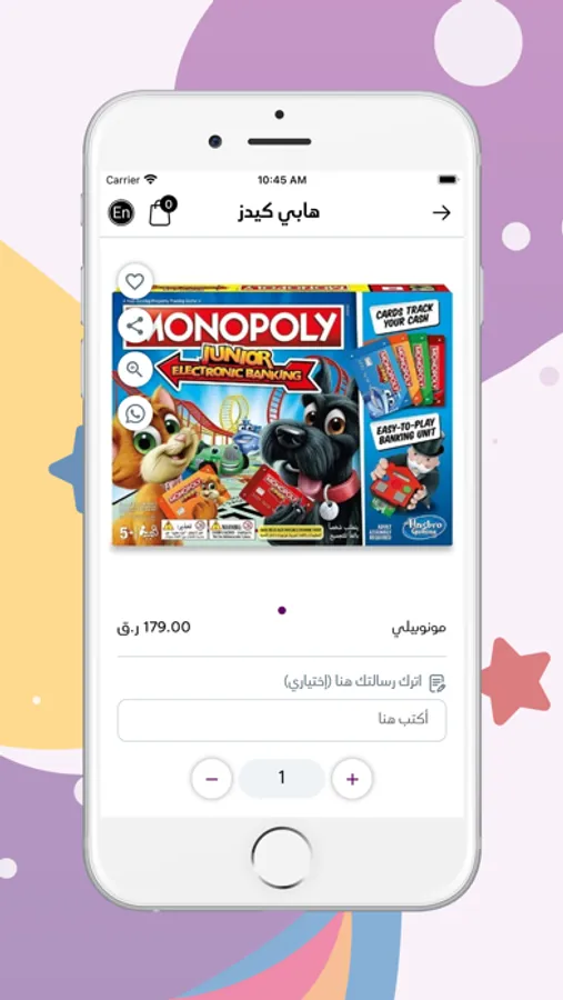 تطبيق هابي كيدز هو المكان الذي سيجعلك سعيدًا. يعود الفضل لواجهة استخدامه السهلة حيث يمكنك شراء منتجات سحرية بخطوات بسيطة: ادخل إلى التطبيق ثم النقر على التصنيف الذي يناسبك وعندها أضف ما يعجبك من المنتجات إلى عربة تسوقك. بعد ذلك أكمل عملية الطلب باختيار طريقة تحصيل طلبك وآلية الدفع التي تناسبك وأضف جميع المعلومات الأخرى المطلوبة.
