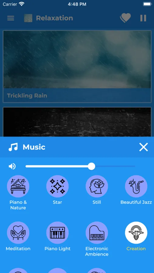There are over 60 rain sounds and each can be mixed with dozens of thunder effects and peaceful music!