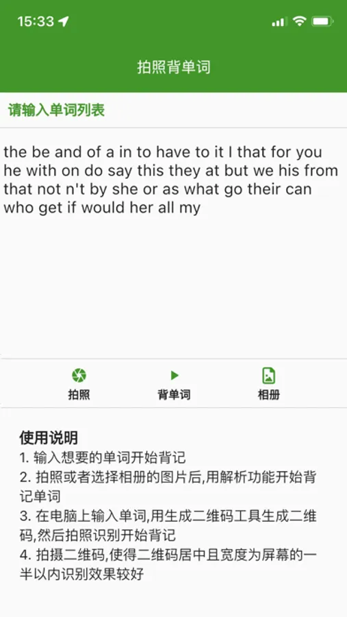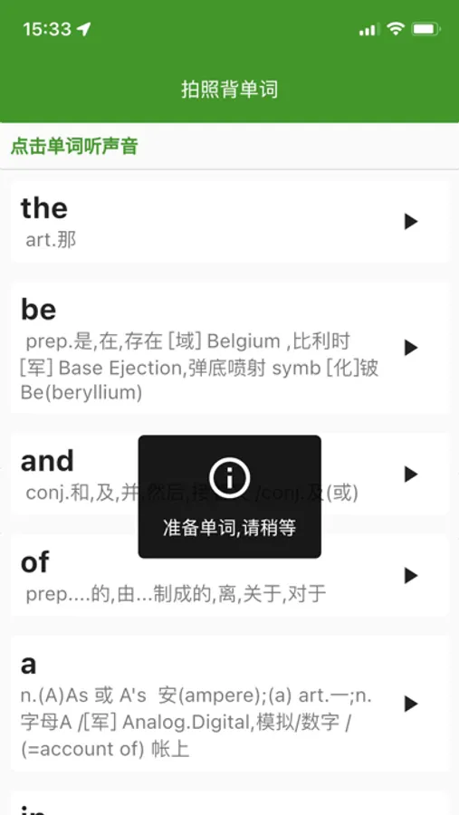 一款简单的即时背单词软件.粘贴或输入文章或单词列表后自动生成背单词列表,也可以拍照从图片中OCR出单词.自定义单词列表,查词和听读音更快捷方便.