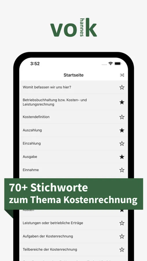 Die „Kostenrechnung Grundlagen – Stichworte“ App, geschrieben von Johannes Volk, widmet sich sämtlichen Studierenden, Lehrlingen und Auszubildenden, die sich auf eine Klausur oder Prüfung im Bereich der Kosten- und Leistungsrechnung vorbereiten möchten, sowie Personen, die sich grundlegendes Wissen aus diesem Bereich aneignen möchten. In über 70 Stichworten werden elementare Begrifflichkeiten, Aspekte und Zusammenhänge aus der Welt der Kostenrechnung einfach und präzise erklärt.
