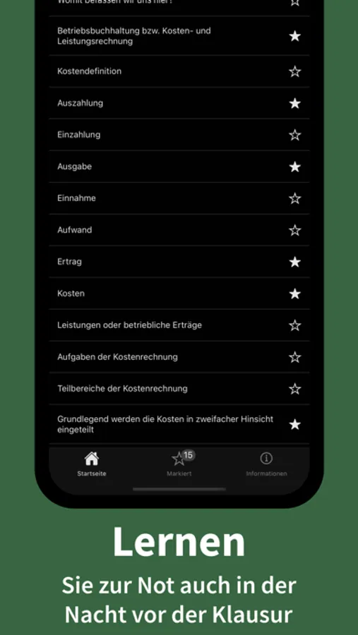 Bereiten Sie sich optimal auf Ihre anstehende Klausur oder Prüfung vor, lernen Sie elementare Begriffe der Kostenrechnung, markieren Sie Stichworte und prüfen Sie ihr gelerntes Wissen.