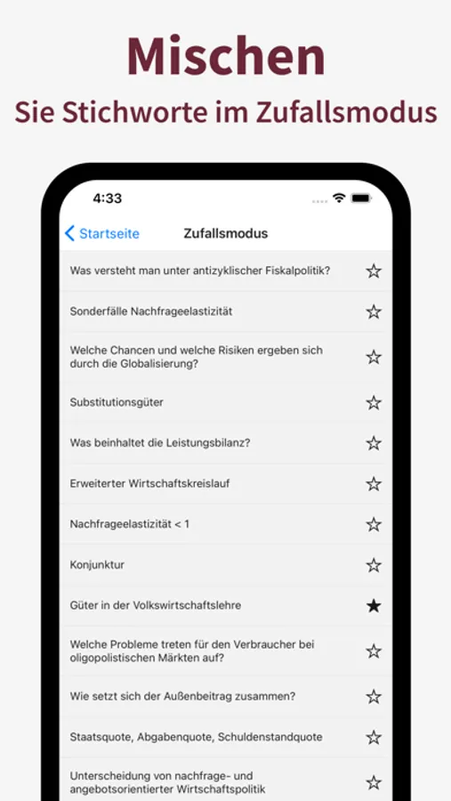 Bereiten Sie sich optimal auf Ihre anstehende Klausur oder Prüfung vor, lernen Sie elementare Begriffe der Volkswirtschaftslehre, markieren Sie Stichworte und prüfen Sie ihr gelerntes Wissen.