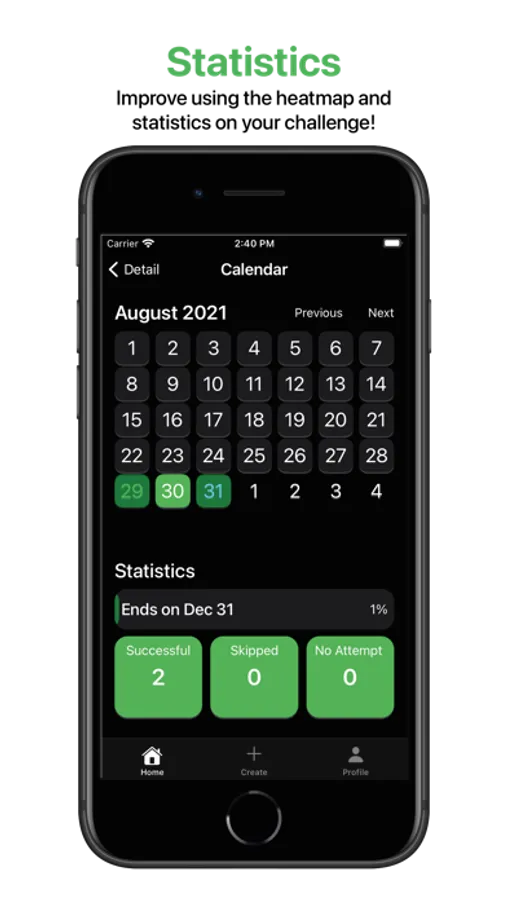Visualise how well you are doing your challenges using the calendar heat map and how often you do your challenges.