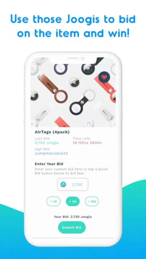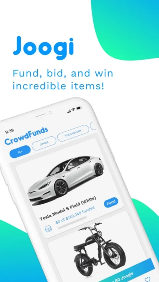 Items are listed as a CrowdFund, where everyone comes together to fund them. Once the item is funded, use Joogis that you earn by contributing USD to bid on the item. Highest bidder wins, and every other bidder keeps their Joogis for the next Auction.