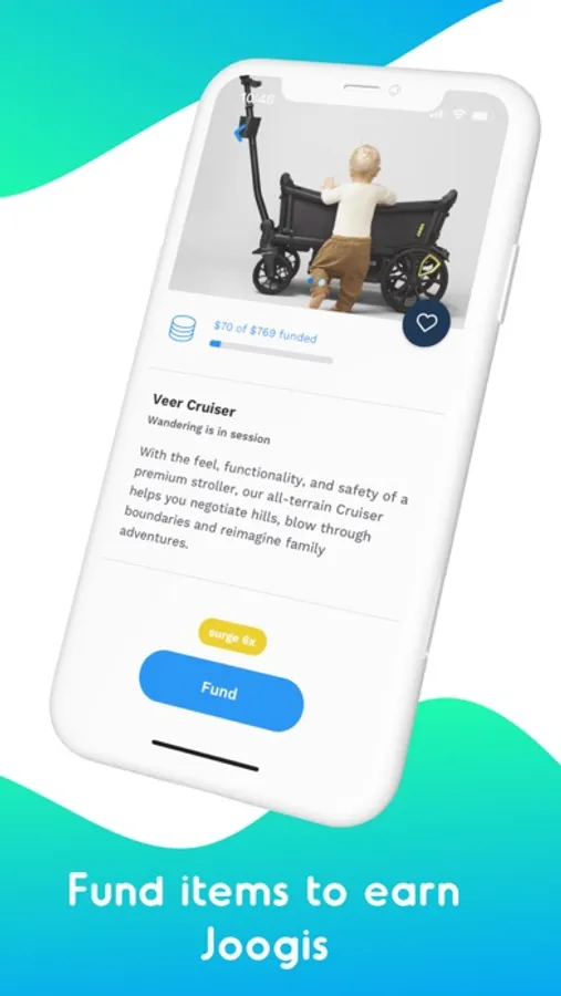 Joogi let's you Crowdfund consumer items with the others, then bid on those items with Joogis earned when you contribute. Bid to win, and if you don't, you get to keep your Joogis for next time.