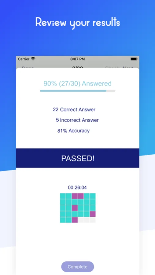 * Exam mode - 60 randomly selected questions under the time pressure of 90 minutes