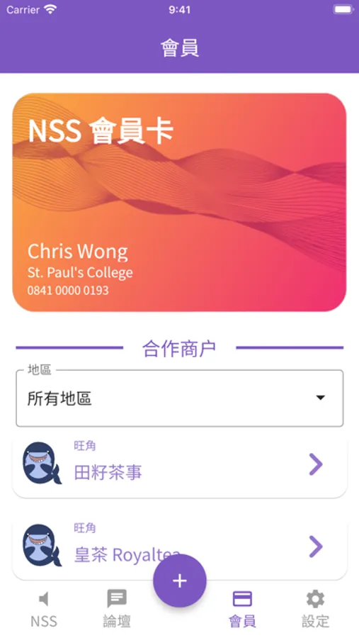 另外,NSS亦喺應用程式內,向會員學校嘅同學推供電子會員卡,合資格嘅同學可以憑卡取得優惠,享受全港十八區商戶提供嘅特別學生優惠!只要你學校嘅學生會參加咗NSS聯校學生會平台,註冊時只要用學校電郵地址登記,就可以自動獲得電子會員卡。