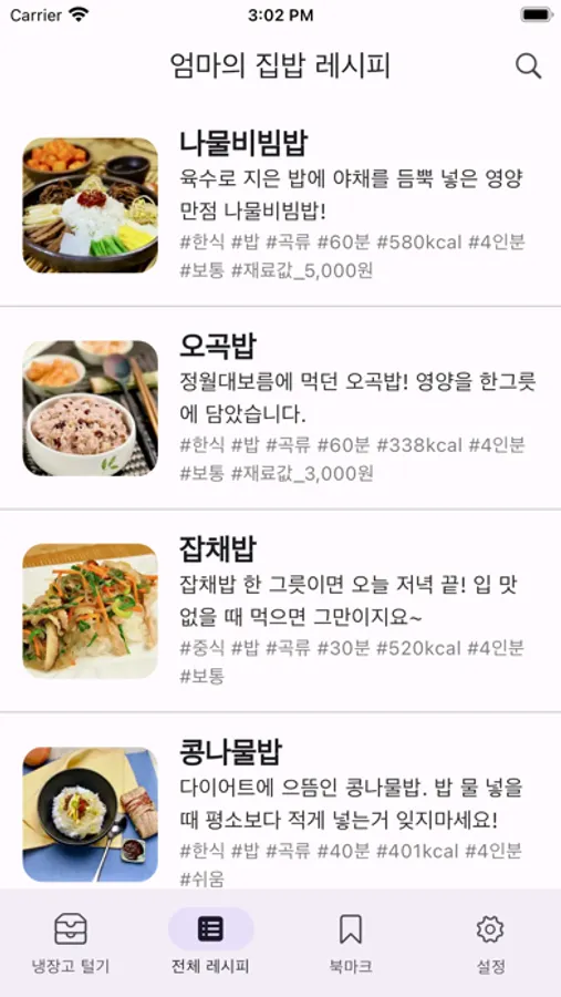 - 한식, 중식, 일식, 퓨전식 등 여러 가지 나라의 레시피를 우리 입맛에 딱 맞는 레시피로 요리할 수 있어요.