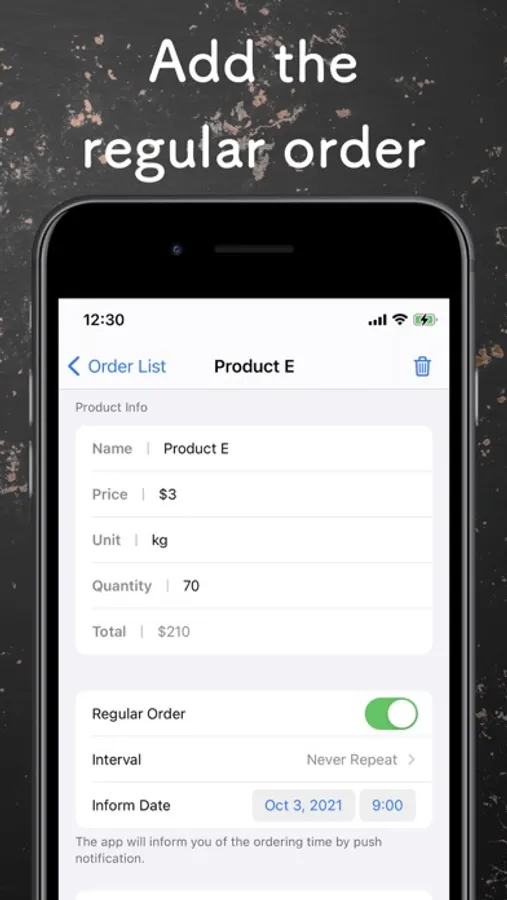 Set an order schedule. The app will inform you of the ordering time by push notification.