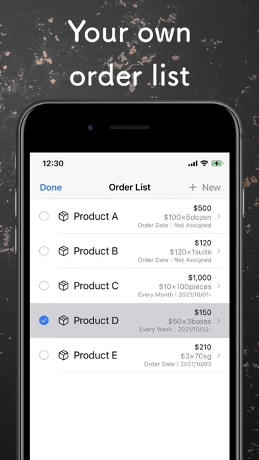Order List manages regular order schedule and helps you order quickly by Mail.