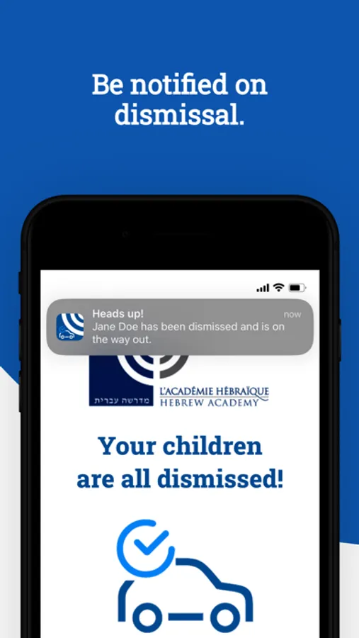 HA Pickup makes Hebrew Academy Elementary dismissal and pickup easier for parents, students, and school administrators. When in your pickup zone, select which of your children you are picking up. You will get a notification as soon as they are dismissed and on their way.