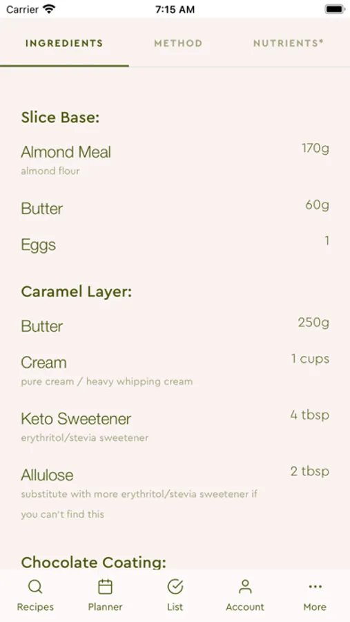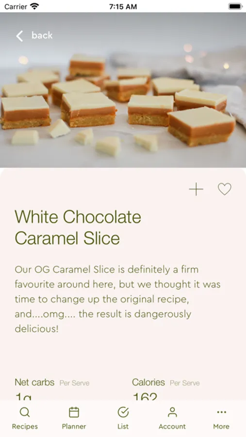 When you set up your profile, you can choose to calculate your personal macro goals which will keep a running tally of your daily net carb and calorie targets, a great way to stay on track! If macros aren’t your thing, you can leave these hidden.