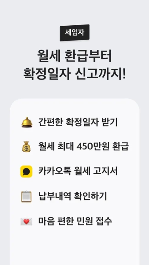 임대차 신고(확정일자 발급)부터 고지서까지 편리하게! 월세 최대 450만원 환급까지 챙기세요.